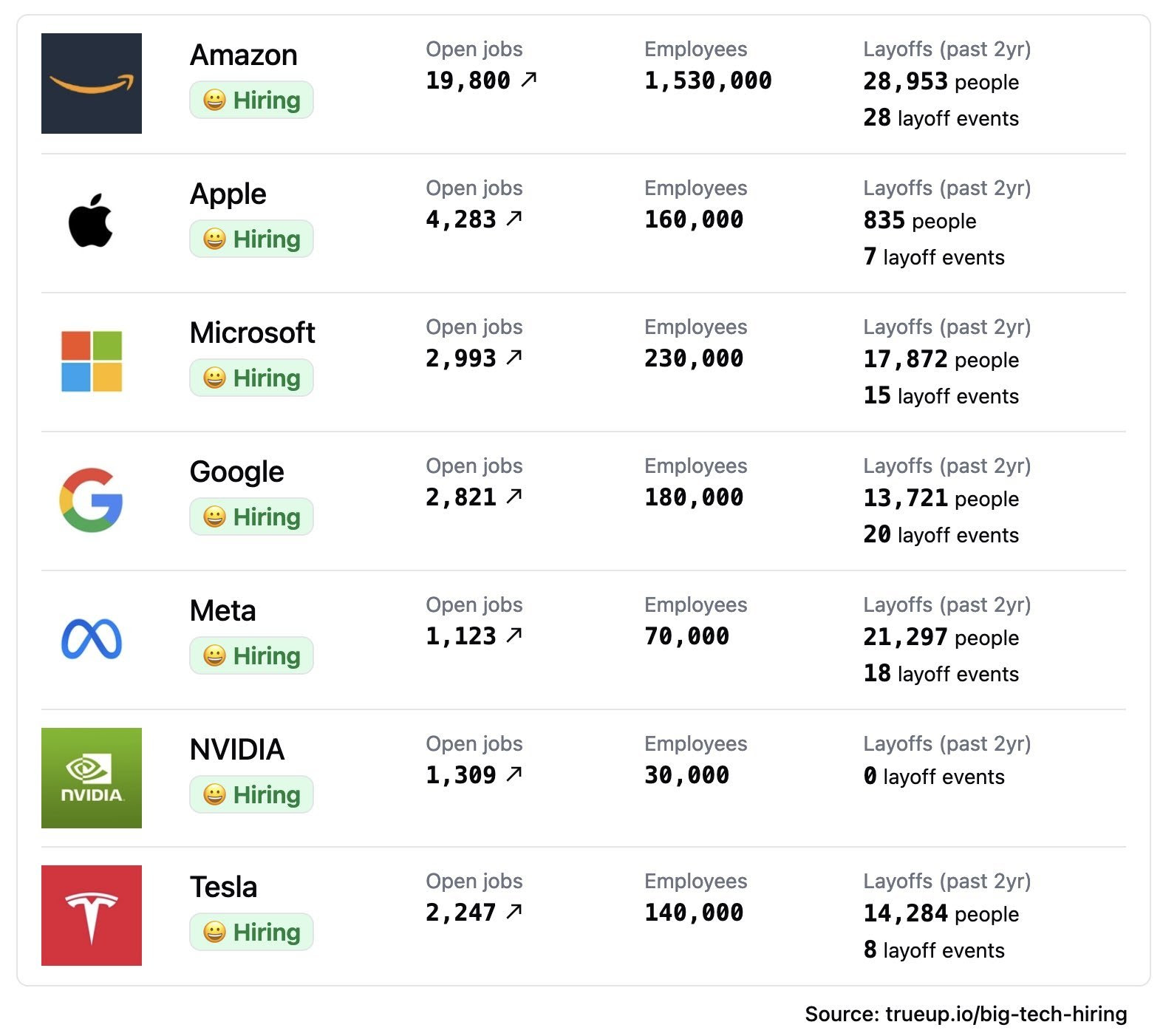 The job market is officially back. Big Tech is all hiring again, thousands of job openings each: