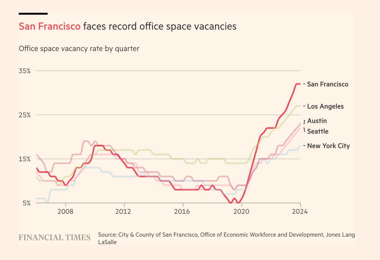 In San Francisco, the epicenter of the tech startup culture, one third of all offices doesn't have a lease. And the trend is growing rapidly, as per this recent study from the Financial times.